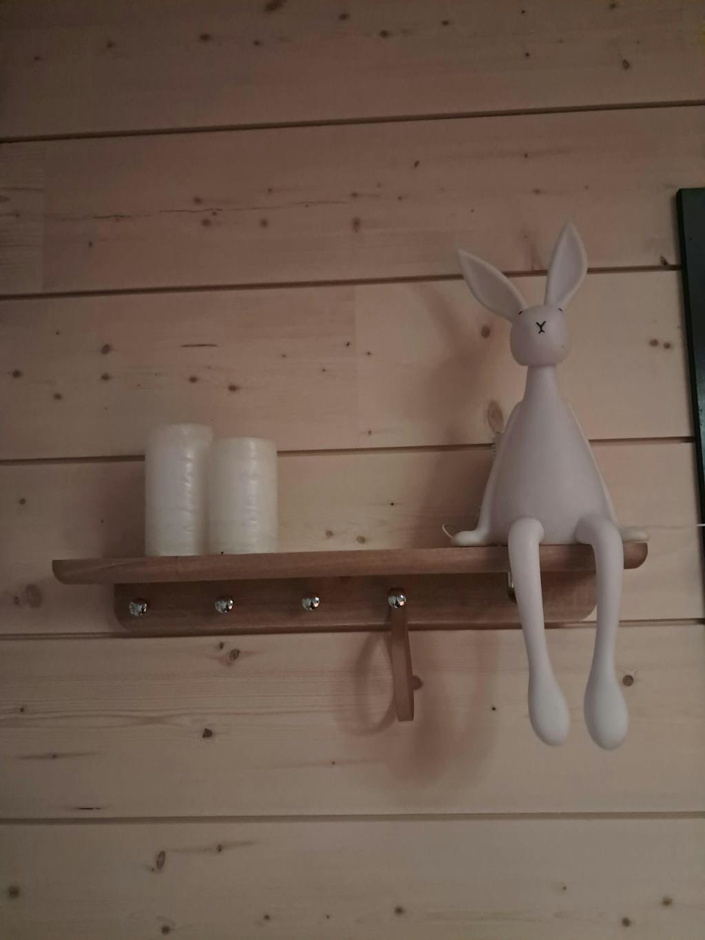 Kaunis hylly tuplana ja sopii mökkimme seinälle, hyvät asennusohjeet ja sabluuna helpotti asennusta, mutta pitkien ruuvien kannat kovin pehmeät, tuli vaikeuksia niiden kanssa.