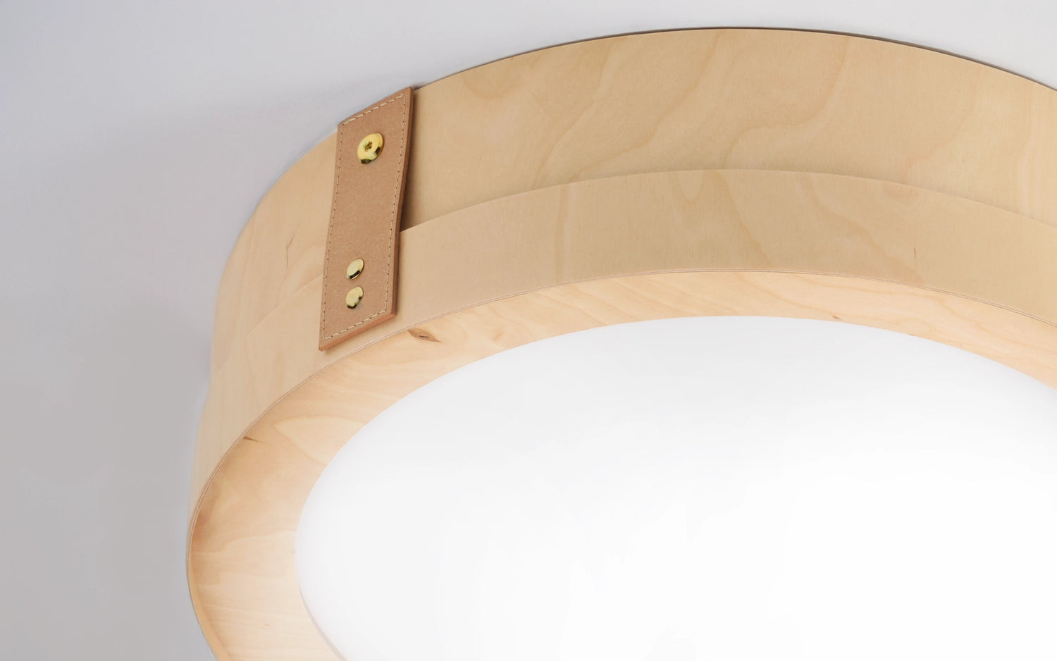 The natural colour of the curved birch plywood creates a soft and pleasant light that is evenly distributed throughout the room. The design, inspired by old plywood hat boxes, brings a timeless and natural look to the interior that blends harmoniously with different interior styles.