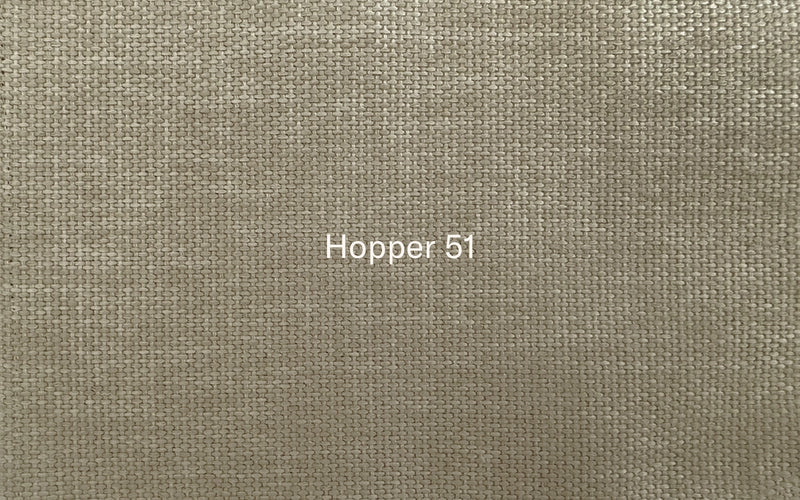 Hopper on sileämpi, kevyesti kiiltävä ja kaksivärinen flatweave, joka tuntuu hieman ohuemmalta. Se on 100 % polyesteriä, erittäin kulutuskestävä (yli 100 000 Martindale) ja suunniteltu helpoksi arjessa: kankaassa on likaa ja kosteutta hylkivä viimeistely. 30 °C vesipesussa päälliset suositellaan käännettäväksi nurinpäin. Pesujen myötä likaa ja kosteutta hylkivä käsittely voi kulua vähitellen. Myös Hopper on Öko-Tex (product class II)- ja REACH-sertifioitu.