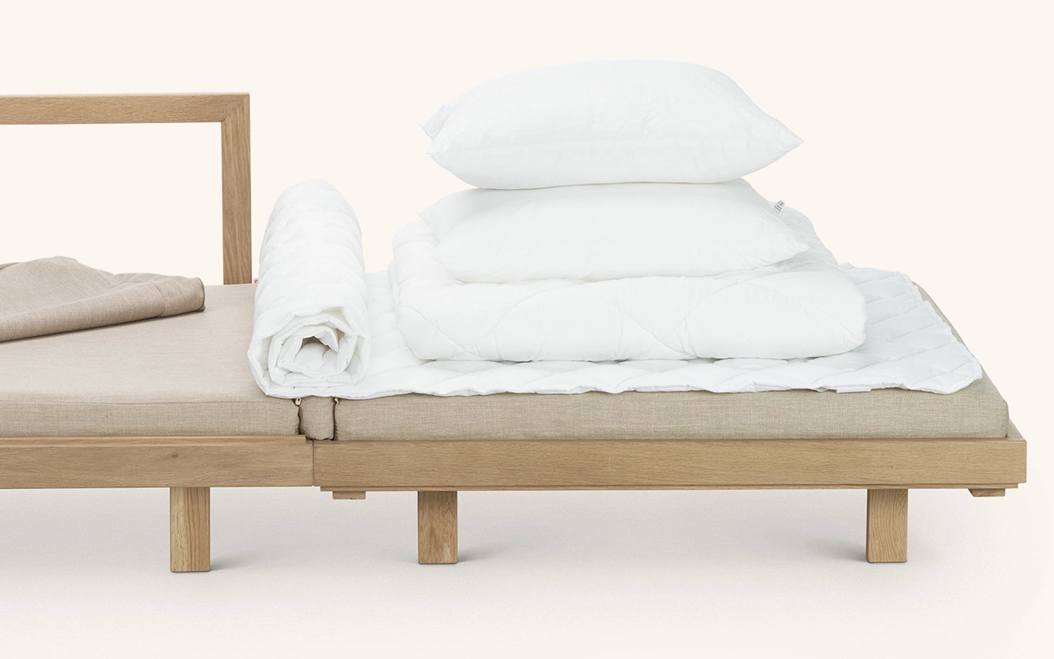 Mukavuus on suunniteltu viimeistä yksityiskohtaa myöten. Istuinpatjassa on 30 mm viskoelastista vaahtomuovia, joka muotoutuu kehon mukaan ja tarjoaa erinomaisen nukkumismukavuuden. Lisäksi vuodetuolin selkänojatyynyn sisään on piilotettu kaikki tarvittavat petivaatteet: peitto, patjansuoja ja kaksi tyynyä (sisältyy hintaan) – näin kaikki on helposti saatavilla ilman ylimääräistä säilytystilaa.