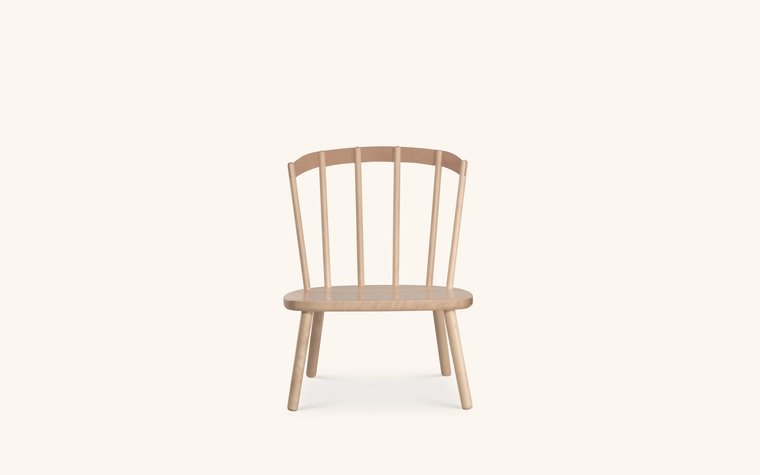 Selkänojan joustavat pinnat mukailevat istujan selkää, tarjoten ainutlaatuista istuinmukavuutta. Pystypinnat on sidottu yläreunasta luonnonvärisellä nahkanauhalla, joka on valmistettu nahkatuotteiden tuotannon ylijäämämateriaalista tehdystä uusionahasta.
