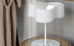Triple-pöytävalaisin tuo poutapilven pehmeän muotokielen lähelle arkea – yöpöydälle, sivutasolle tai työpöydälle. Kiiltävän valkoinen varjostin suodattaa valon lempeästi, joten lopputulos on rauhallinen ja häikäisemätön. Valaisin toimii yhtä hyvin tunnelmallisten iltojen taustavalona kuin lukutuokioiden kumppanina.