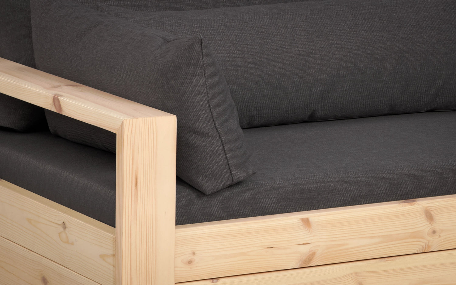 Kaiku-vuodesohvan nerokas säilytysratkaisu erottaa sen muista: selkänojatyynyjen sisään on piilotettu kaikki tarvittavat petivaatteet kahdelle vieraalle – 2 peittoa, 2 patjansuojaa ja 4 nukkumatyynyä. Tämä tekee vieraiden majoittamisesta mutkatonta ja pitää tilan aina siistinä ilman erillistä vuodevaatesäilytystä.